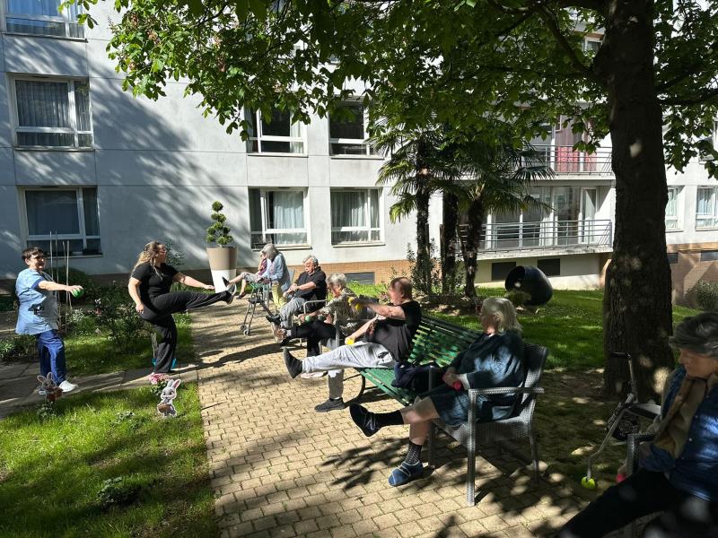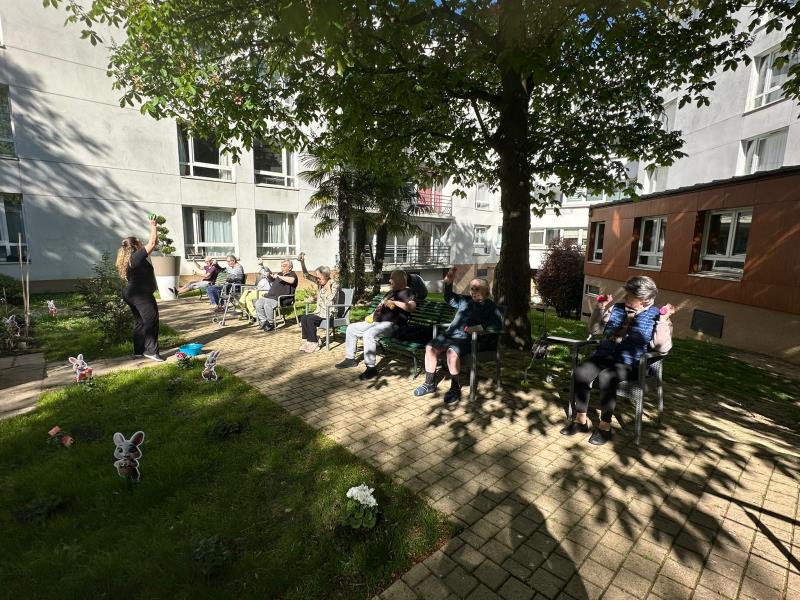 Nos résidents ont profité d’une belle activité sportive en extérieur 🏃♂️🤸♀️ : mouvements doux, bonne humeur et soleil au rendez-vous 🌞😄