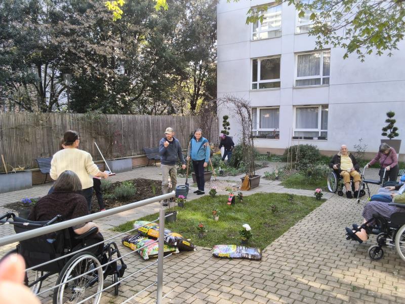 Les résidents ont pu admirer les fleurs 🌸🌼 achetées la veille et participer activement en choisissant leur emplacement.